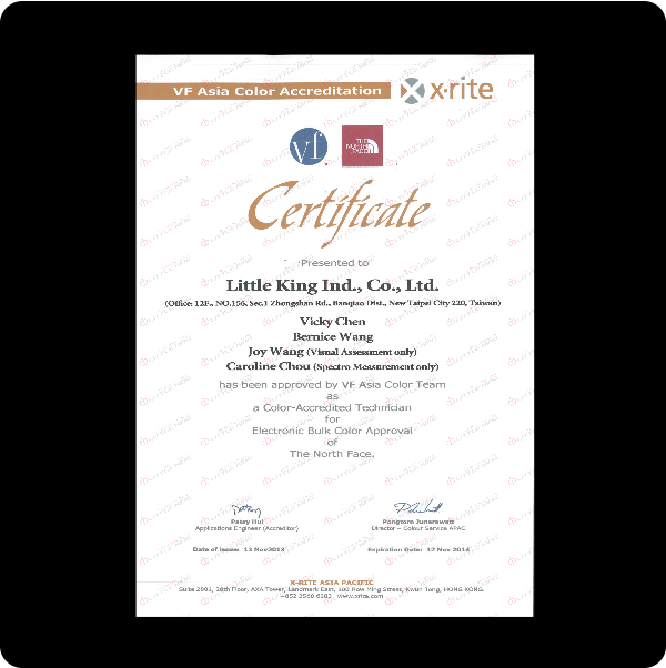 全球回收標準(Global Recycle Standard, GRS)係Control Union Certifications針對回收纖維所建立的品質管理認證。由取得原物料至供應鍊各階段的產銷過程,皆需符合GRS之認證標準,始能獲得此認證。立肯於 2 0 1 2 年取得GRS證書,證書相關的產品除了原料來源受規範外,生產過程包含廢水處理,以及勞工安全等,皆遵循嚴格的認證規範。在符合客戶需求的同時,立肯亦努力為環境永續發展盡心力。